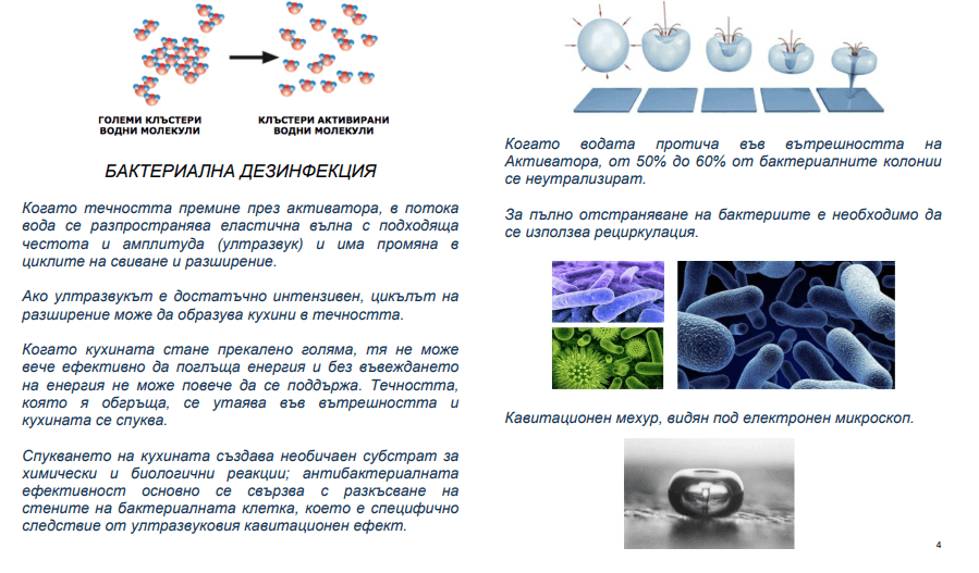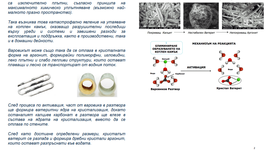 ULTRA Activ B активаторите променят структурата на водата на входа на бойлери и на термопомпи – дехидратират йоните и разрушават водородните връзки между групите водни молекули.