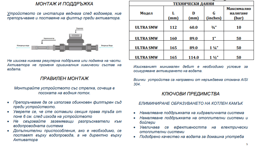 - ULTRA Activ B активаторите се монтират резбово към нипела на входа на водата в бойлера, пералнята, кафемашината и на входа на водата в термопомпата.