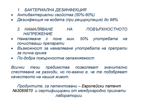 - Подобрява разтварящата и измиващата способности на водата и намалява разхода за миещи препарати.